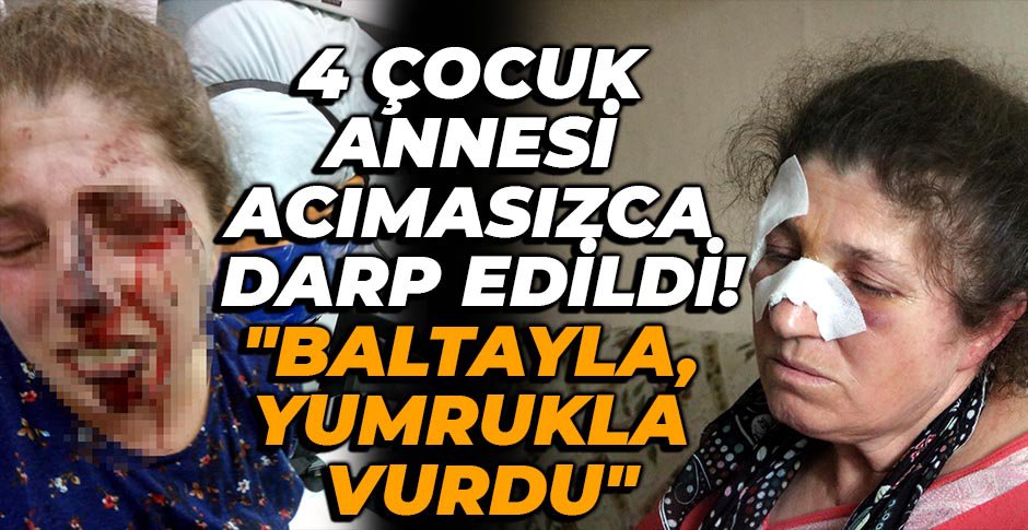 Bolu'nun Mengen ilçesinde eşinin ağabeyi ve yeğeni tarafından balta ve yumruklarla acımasızca darp edildiği iddia edilen kadın hastanelik oldu. Yaşadığı korku dolu anları anlatan 4 çocuk annesi, "Çok vurdu. Hem baltayla hem yumrukla hem de boğazıma basarak beni yere fırlattı. Bas bas bağırdım 'benim Allah'tan başka kimsem yok mu bu köyde' diye. Kimse gelmedi ayırmaya" diyerek gözyaşlarına hakim olamadı.