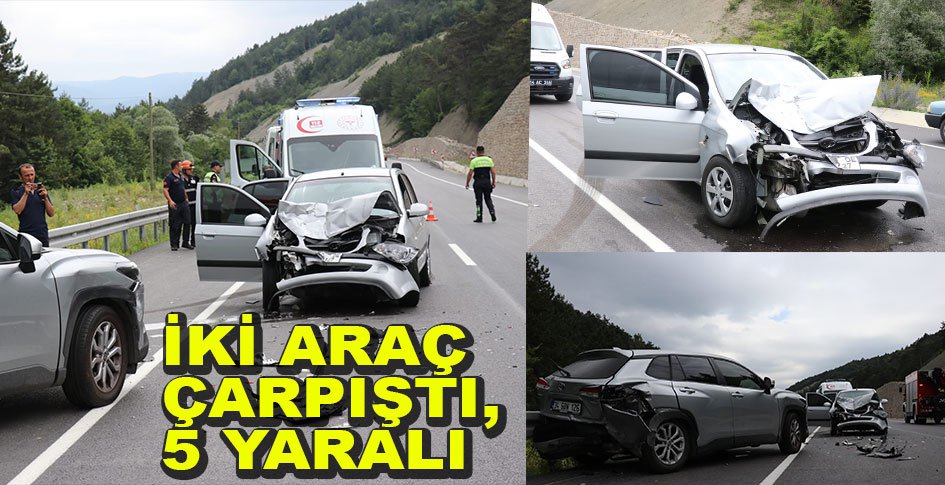 Bolu’da seyir halindeki otomobil, U dönüşü yapmak isteyen cip ile çarpıştı; kazada 3’ü çocuk 5 kişi yaralandı.