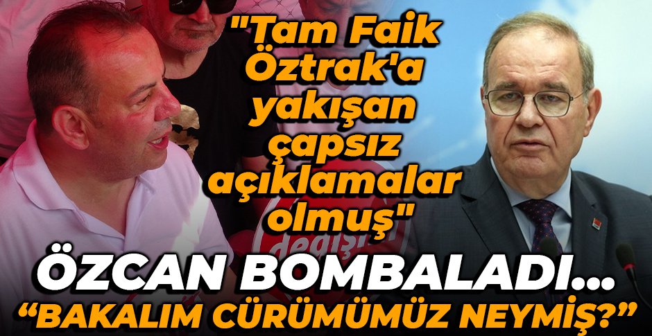 Faik Öztrak'ın sonradan CHP'li olduğunu dile getiren Bolu Belediye Başkanı Tanju Özcan, "Vallahi tam Faik Öztrak'a yakışan çapsız açıklamalar olmuş. Aslında ona cevap vermeye bile değmez ama birkaç şey söyleyeyim. Önce Faik Bey bahçivan ama biberi yok sözcü ama hiçbir şeyden haberi yok. Yani şimdi Bolu'da anketçiler soruyorlar 'Bolu'nun en büyük sorunu nedir?'diye. Sorun yok cevap çıkıyor. Son dört yılda yapılmış bütün anketlere bakarsanız Türkiye'nin en başarılı ilk beş belediye arasında çıktığımız görülüyor. Türkiye'nin en temiz şehrinde yaşıyoruz. Sayın Faik Öztrak, bunlardan haberi olmadığı için o Fildişi kulesinden çıkmadığı için. Bir de Faik Öztrak sonradan CHP'li olmuş bir adam. CHP üyesi olmuş bir adam. Yani bürokrasi koltuğundan gelmiş. Ondan sonra direkt CHP'de milletvekili olarak başlamış. MYK'da hızlı bir şekilde yükselmiş. İşte Abdüllatif Şener'i gördük. Yarın bunun elinden koltuğu alırsanız partiyi ilk eleştiren insanlardan biri de bu olur. O yüzden hani hep tekrarlıyorum. Bahçıvan ama biberi yok parti sözcüsü ama hiçbir şeyin haberi yok" ifadelerini kullandı.