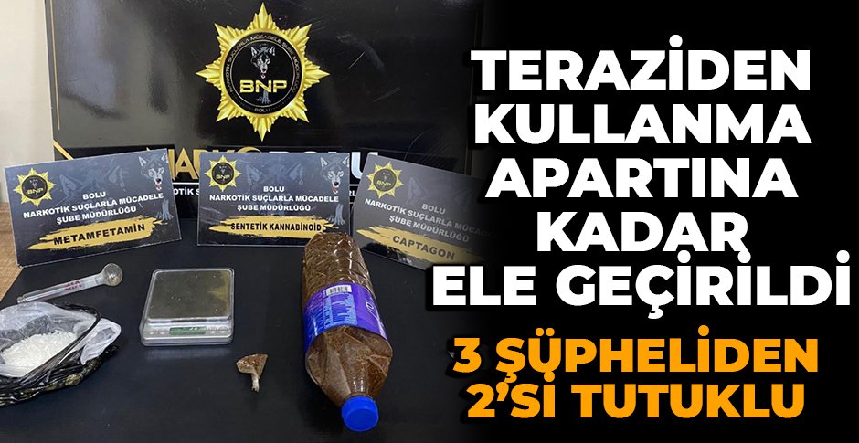 Edinilen bilgiye göre, Narkotik Suçlarla Mücadele Şube Müdürlüğü ekipleri, uyuşturucu madde kullanımı ve ticaretini engellemek adına denetim gerçekleştirdi. Narkotik ekipleri tarafından durdurulan otomobil kontrol edildi. Araçta ve araç içerisinde bulunan 3 kişi üzerinde de arama yapıldı. Ekipler tarafından yapılan aramalarda; 105 gram sentetik kannabinoid, 88 gram metamfetamin, captagon hap, hassas terazi ve uyuşturucu madde kullanma aparatı ele geçirildi.