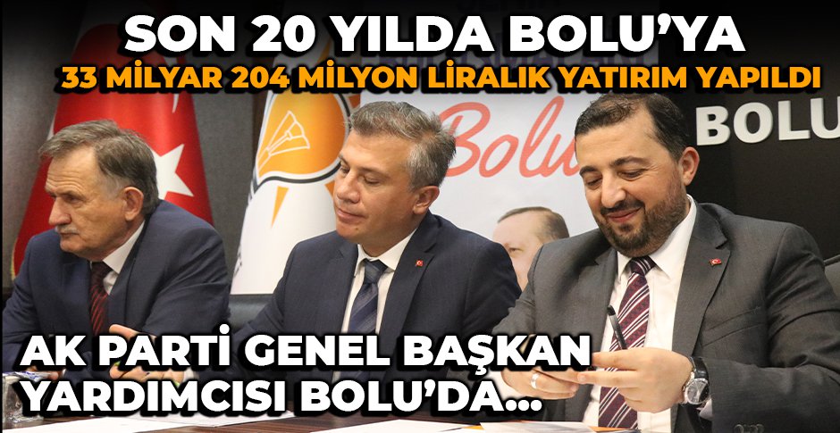 AK Parti Genel Başkan Yardımcısı ve İnsan Hakları Başkanı Prof. Dr. Mehmet Ali Zengin, Bolu’ya yapılan yatırımlarda değinerek, “2002’den bu yana bu topraklarda çevre ve şehircilikten, kültür ve turizme, enerjiden, tarım ve ormana kadar birçok reform gerçekleştirdik. Bolu'ya son yirmi yılda 33 milyar 204 milyon liralık yatırım ve destek sağladık. Mesela adalet alanında 214 milyon TL, Aile ve Sosyal Hizmetler'de 1 milyar 63 milyon TL. Çalışma ve Sosyal Güvenlikte 1 milyar 852 milyon TL. Çevre ve Şehircilikte 9 milyar TL. Enerji ve Tabii kaynaklarda 1 milyar 312 milyon TL. Gençlik ve Spor'da 2 milyar 333 milyon lira. Kültür ve turizmde 136 milyon lira. Eğitimde 445 milyon lira. Sağlık 1 milyar 73 milyon lira. Sanayi ve Teknoloji'de 1 milyar 154 milyon lira. Tarım ve Ormanda 3 milyar 20 milyon TL. Ulaştırma ve altyapıda 11 milyar 599 milyon TL yatırım gerçekleştirdik” şeklinde konuştu.