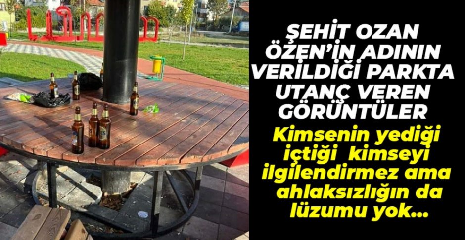 Bolu'nun Tepeceik Mahallesinde bulunan Şehit Ozan Özen Parkı’nda alkol içerek şişeleri masada bırakan görgüsüz şehir eşkıyaları vatandaşların tepkisini çekti. Sabah çocuklarını parka getiren vatandaşlar masaların üzerinde bira şişelerini görünce yazıklar olsun diyerek tepki gösterdiler.