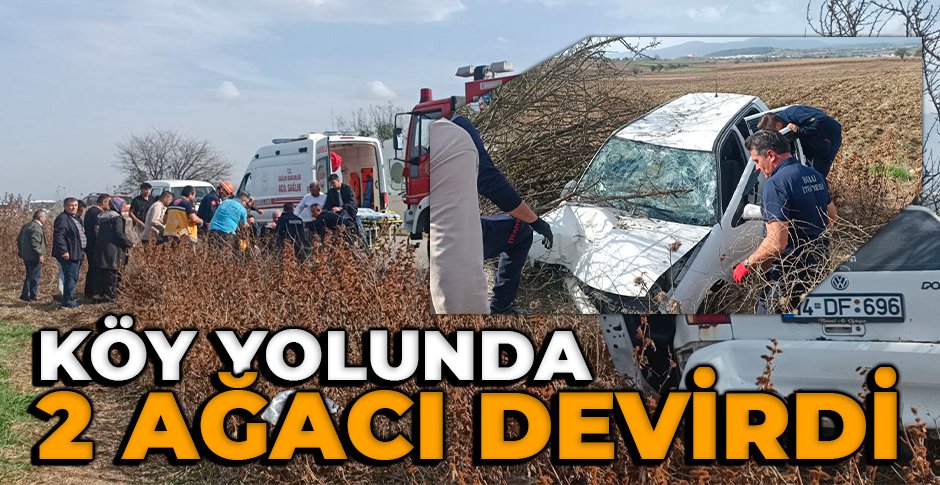 Kaza, Karacaağaç-Bahçeköy grup bağlantı yolunda Yazıören köyü mevkiinde meydana geldi. Edinilen bilgiye göre, Karacaağaç-Bahçeköy grup bağlantı yolunda seyreden Şemsi Ö. idaresindeki 14 DF 696 plakalı otomobil, Yazıören köyü mevkiinde kontrolden çıktı. Kontrolden çıkan otomobil, yol üzerinde bulunan 2 ağacı devirerek kullanılamaz hale geldi. Meydana gelen kazada sürücü Şemsi Ö. ve yanında yolcu konumunda bulunan Emir T. yaralandı. Yoldan geçen diğer sürücüler durumu 112 Acil Çağrı Merkezi’ne bildirdi. İhbar üzerine bölgeye sağlık, jandarma ve itfaiye ekipleri sevk edildi.