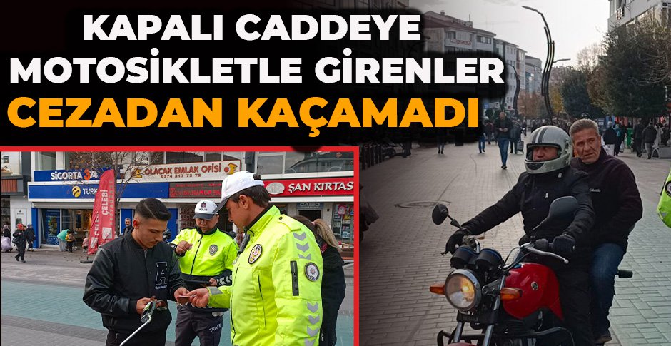 Bolu’da motosiklet geçişine kapalı olan İzzet Baysal Caddesi’nde polis ekipleri tarafından denetim yapıldı. Denetim çerçevesinde caddeye giren motosiklet sürücülerine 436 lira cezai işlem uygulandı.