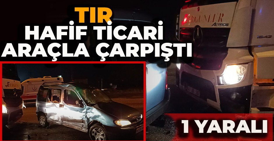 Bolu’da D-100 kara yolunda tır ile hafif ticari aracın çarpışması neticesinde bir kişi yaralandı.