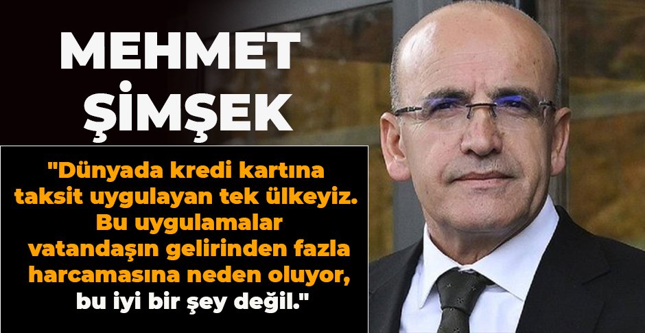 Hazine ve Maliye Bakanı Mehmet Şimşek, basına kapalı yaptığı toplantıda "Dünyada kredi kartına taksit uygulayan tek ülkeyiz. Bu iyi bir şey değil." dedi.