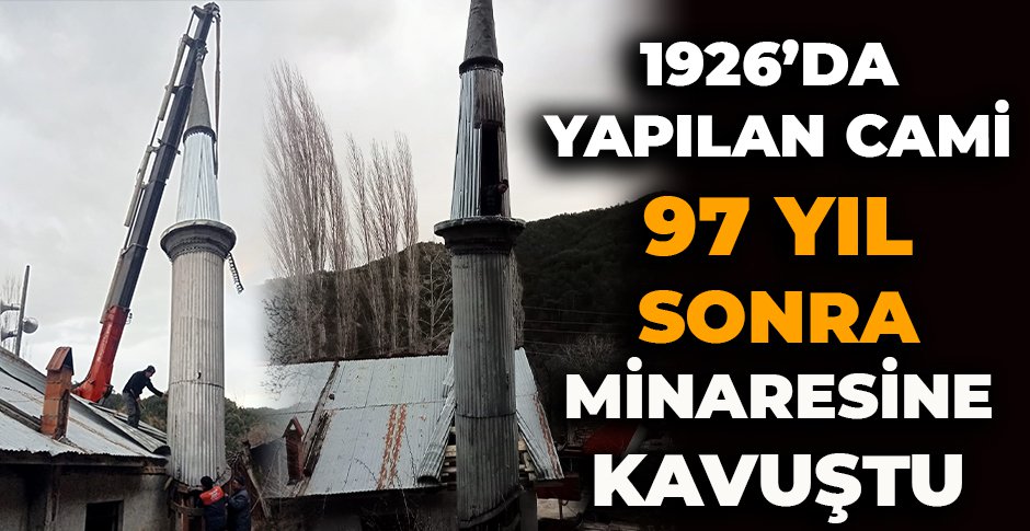 Bolu'nun Mudurnu ilçesinde 1926 yılında inşa edilen caminin ilk minaresi köylüler tarafından yeni yaptırıldı.