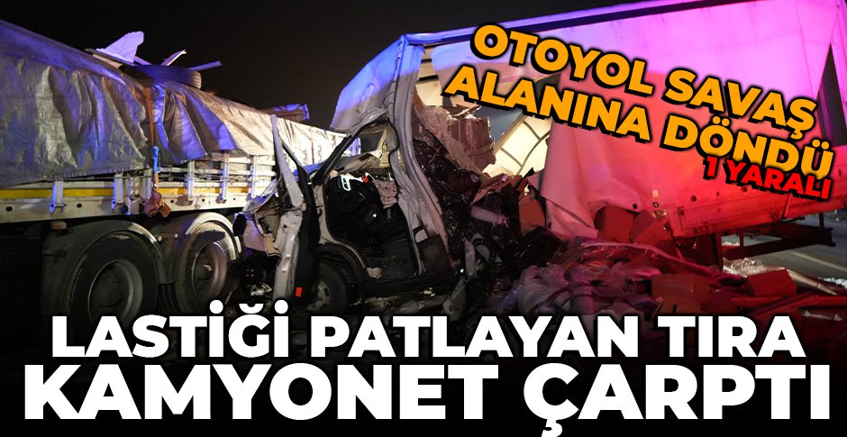 Kaza, Anadolu Otoyolu’nun Bolu geçişinde Doğu gişeleri mevkiinde meydana geldi. Edinilen bilgiye göre, İstanbul istikametinde seyreden Yusuf Yıldız idaresindeki 06 DDT 803 plakalı tırın ön lastiği patladı. Lastiğinin patladığını fark eden sürücü, aracını emniyet şeridine park ederek gerekli duba önlemini aldı. Aynı istikamette seyreden Salim Özcan yönetimindeki 34 FUC 978 plakalı kamyonet, emniyet şeridindeki lastiği patlayan tırın dorsesine çarptı. Çarpmanın etkisiyle kamyonet otoyolda 2 şeridi kapattı. Meydana gelen kazada kamyonet sürücüsü Salim Özcan yaralandı. Kamyonun kasasında bulunan çeşitli malzemeler yola saçıldı ve otoyol savaş alanına döndü. Durum 112 Acil Çağrı Merkezi’ne bildirildi. İhbar üzerine bölgeye sağlık, polis, itfaiye, jandarma, AFAD ve karayolları ekipleri sevk edildi. 2 şeridin tamamen kapandığı kazanın ardından bölgede uzun araç kuyrukları oluştu.