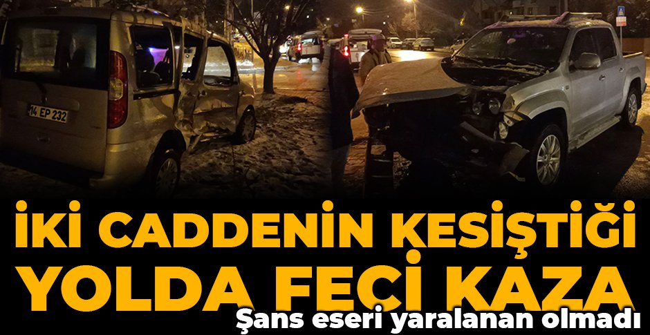 Kaza, Kalıcı Konutlar Mahallesi’nde meydana geldi. Edinilen bilgiye göre, Dr. Akın Çakmakçı Bulvarı üzerinden kent merkezi istikametinde seyreden O. Y. idaresindeki 14 BA 633 plakalı pikap ile Orhan Gazi Caddesi’nden karşıya geçmekte olan F. A. yönetimindeki 14 EP 232 hafif ticari araç çarpıştı. Hafif kar yağışının olduğu bölgede kaygan zeminde hafif ticari araç çarpışmanın etkisiyle apartmanın bahçesine savruldu. Meydana gelen kazada şans eseri yaralanan olmadı. Kazada iki araçta da büyük çapta maddi hasar meydana geldi.