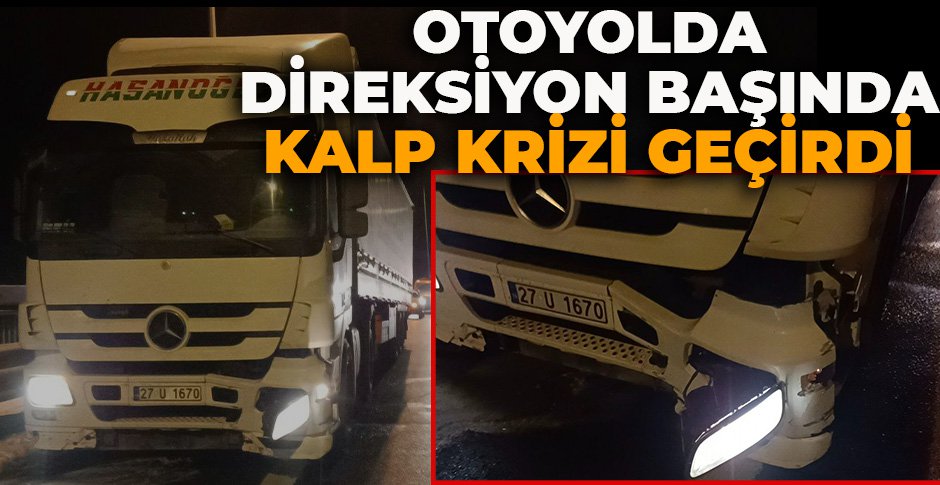 Olay, Anadolu Otoyolu’nun Bolu Dağı Tüneli mevkiinde meydana geldi. Edinilen bilgiye göre, Ankara istikametinde 27 U 1670 plakalı tırıyla seyreden Abdurrahman Biter (64) direksiyon başında kalp krizi geçirdi. Kalp krizi geçiren şoförün yönetimindeki tır, bariyerlere çarparak otoyolun sol şeridinde durdu. Durum diğer sürücüler tarafından 112 Acil Çağrı Merkezi’ne bildirildi. İhbar üzerine bölgeye sağlık, polis, jandarma ve karayolları ekipleri sevk edildi. Sağlık ekipleri tarafından sürücünün kalp krizi geçirdiği tespit edildi. Olay yerinde Abdurrahman Biter’e kalp masajı yapıldı. Bu esnada otoyolda duran tır, emniyet şeridine park edildi. Abdurrahman Biter kalp masajı yapılarak Düzce’de hastaneye sevk edildi. Hastanede Abdurrahman Biter’e müdahalenin devam ettiği öğrenildi.
