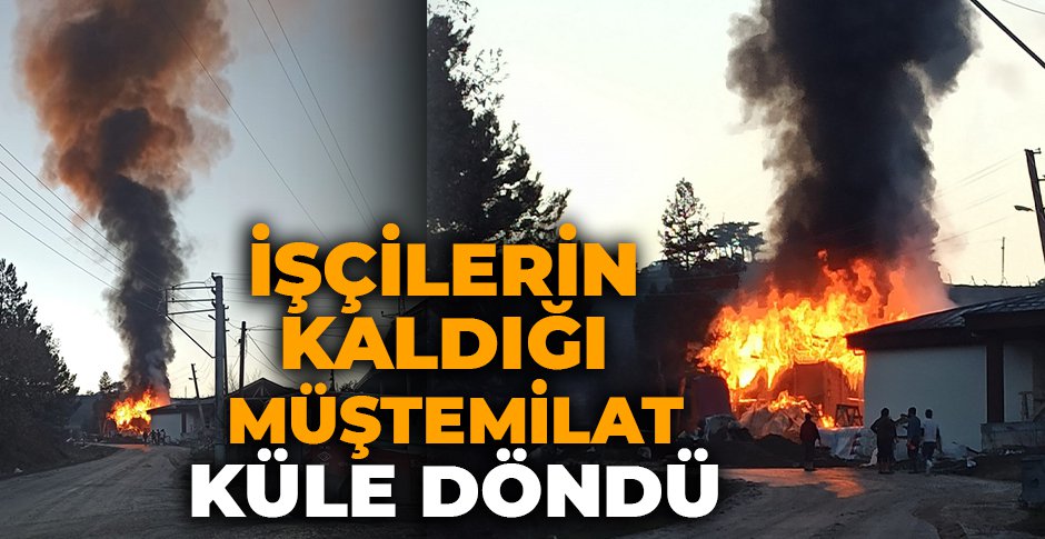 Bolu’nun Göynük ilçesinde inşaat işçilerinin kaldığı müştemilat alev alev yandı.