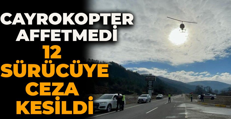 Bolu’da jandarma ekipleri tarafından Ankara-Zonguldak’ı birbirine bağlana D-750 kara yolunda cayrokopter destekli trafik denetimi yapıldı. Kurallara uymadığı tespit edilen 12 sürücüye 10 bin 728 lira ceza kesildi.