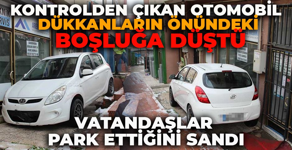 Otomobilin düştüğü yeri gören bazı vatandaşlar, sürücünün park ettiğini sanarak "Buraya nasıl park etmiş" şeklinde tepki verdi.