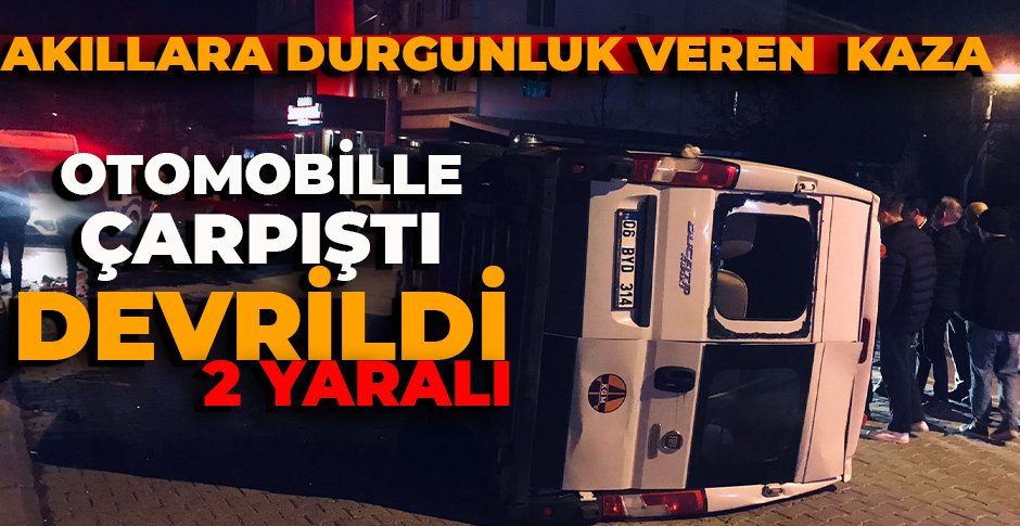 Olay, Beşkavaklar Mahallesi’nde Horasan Sokak üzerinde meydana geldi. Edinilen bilgiye göre, ara sokaktan Horasan sokağa girmek isteyen Semih N. idaresindeki 14 ABD 004 plakalı otomobil ile Horasan sokakta seyreden Muharrem S. yönetimindeki 06 BYD 314 plakalı minibüs çarpıştı. Çarpışmanın etkisiyle Fiat Ducato marka minibüs devrildi. Meydana gelen kazada sürücüler hafif şekilde yaralandı.