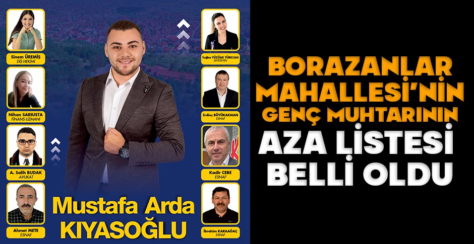Borazanlar Mahallesi'nin genç muhtar adayı Mustafa Arda Kıyasoğlu'nun azaları belli oldu.