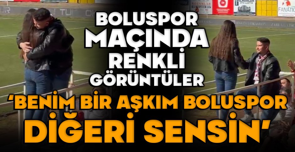 Boluspor ile Erzurumspor arasında oynanan Trendyol 1.lig 24. hafta maçından önce kırmızı-beyazlı takımın tribününden bir genç, kız arkadaşına evlenme teklif etti. Genç, ‘evet’ yanıtını alınca kız arkadaşına uzun süre sarıldı.