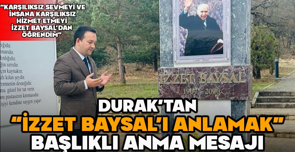 Karşılıksız sevmeyi ve insana karşılıksız hizmet etmeyi İzzet Baysal’dan öğrendiğini söyleyen Durak, “Şunu çok açık bir yüreklilikle söyleyebilirim ki vatanı karşılıksız sevmeyi ve insana karşılıksız hizmet etmeyi, İzzet Baysal’dan öğrendim. Onun ölümü sonrasında gazetelerin attığı manşetler “Bolu Babasını Kaybetti”, “Bolu Öksüz Kaldı” şeklinde olmuştu. Gerçekten de bir şehir nasıl öksüz kalır, onun vefatıyla tüm Bolulular bunu en acı şekilde hissetti.”