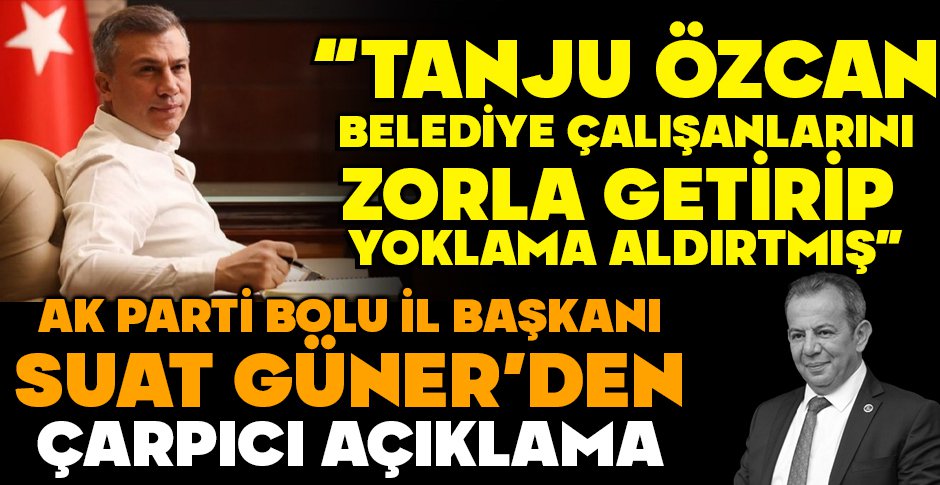 AK Parti Bolu İl Başkanı Suat Güner, Bolu Belediye Başkanı Tanju Özcan’ın Pazar günü düzenlediği proje tanıtım toplantısında belediye personelinin zorla getirtilip, yoklama aldırıldığını iddia etti.