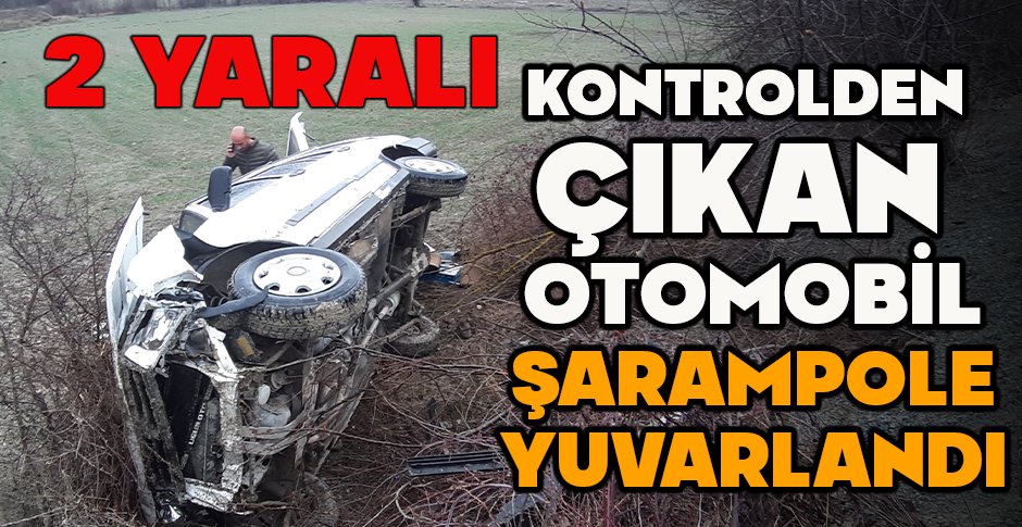 Bolu'nun Mudurnu ilçesinde kayganlaşan yolda kontrolden çıkan otomobil şarampole yuvarlanırken, 2 kişi ise yaralanarak hastaneye kaldırıldı.