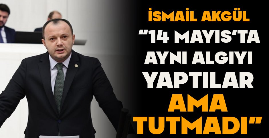 Milliyetçi Hareket Partisi Bolu Milletvekili İsmail Akgül, katıldığı canlı yayın programında yaptığı açıklamada “Maddi güçleriyle anket şirketlerine paralar vererek kendilerini yüzde 60’larda gösterip, MHP’yi yok saymak akıl tutulmasıdır. 14 Mayıs’ta aynı algıyı yaptılar, aynı şeyleri söylediler. Bu tutmadı, vatandaşımız bizim samimiyetimizi biliyor” dedi.