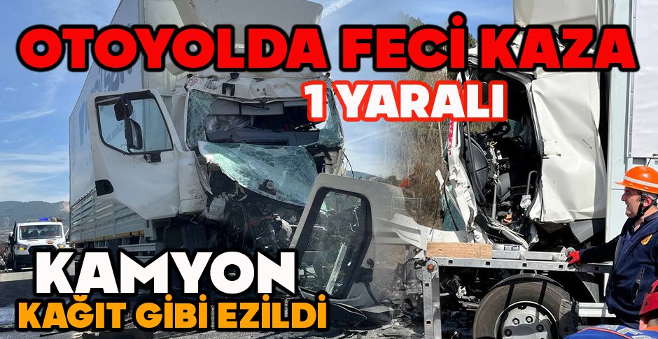 Anadolu Otoyolu’nun Bolu geçişinde lastiği patlatan tırın dorsesine çarpan kamyon kağıt gibi ezildi. Araçta sıkışarak yaralanan kamyon sürücüsü itfaiye ekiplerinin uzun uğraşları neticesinde bulunduğu yerden çıkarıldı.