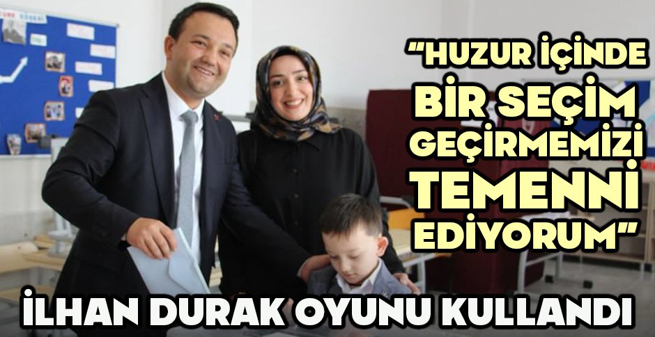 Milliyetçi Hareket Partisi Bolu Belediye Başkan adayı İlhan Durak, eşi Zeynep Durak ve oğlu Alparslan Durak ile birlikte 100. Yıl İlkokulu’nda 1073 No’lu sandıkta oyunu kullandı.