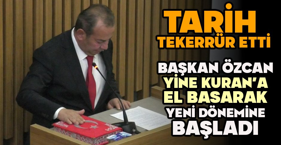 Bolu Belediye Başkanı Tanju Özcan, seçimi yüzde 52,90 oranında oy alarak kazanmasının ardından 5 yıllık yeni dönemine Kur’an-ı Kerim’e el basıp yemin ederek başladı. Özcan, yemin ederken “Kimseyi kayırmadan, tüyü bitmemiş yetimin hakkını yemeden yedirmeden, Bolu halkının parasını israf etmeden, ihaleleri şeffaf bir şekilde yapmak suretiyle Belediyede şeffaflığı sağlamak üzere ve kurucu liderimiz Mustafa Kemal Atatürk’ün izinden ayrılmadan, onun devrimlerine sahip çıkarak önümüzdeki beş yılda Bolu’yu objektif bir şekilde yöneteceğime Allah’ım, namusum, vicdanım üzerine büyük Türk Milleti ve Bolu halkının önünde yemin ederim.” ifadelerini kullandı.
