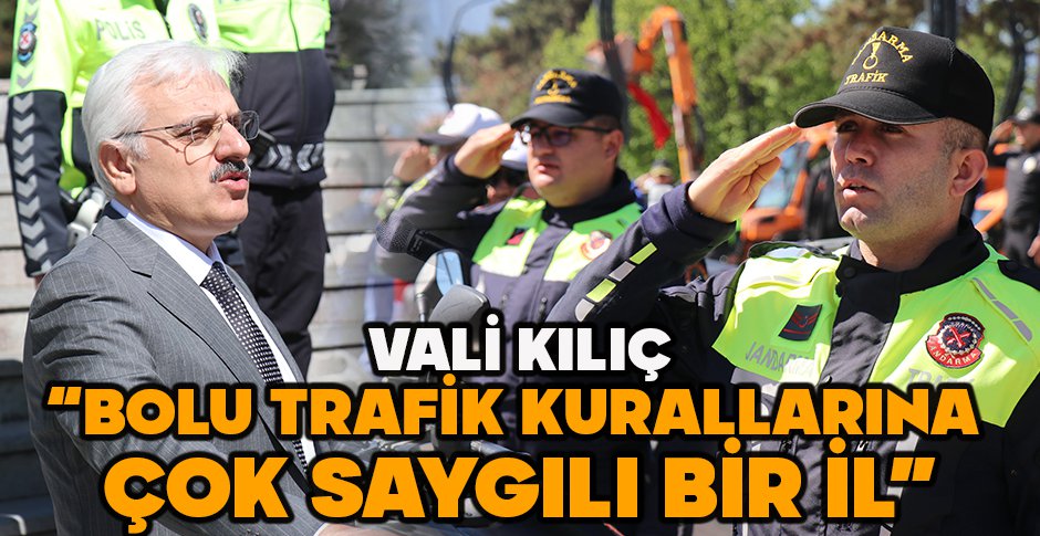 Bolu'da Karayolu Trafik Güvenliği Haftası dolayısıyla düzenlenen etkinliğe katılan Vali Erkan Kılıç, "Bolu, trafik kurallarına çok saygılı bir il. Gerçekten dünyaya örnek olacak bir ilde yaşıyoruz. Yayalarımız trafiğe çıktığı anda sürücülerimiz anında duruyor. Bu bizi gerçekten mutlu ediyor" dedi.