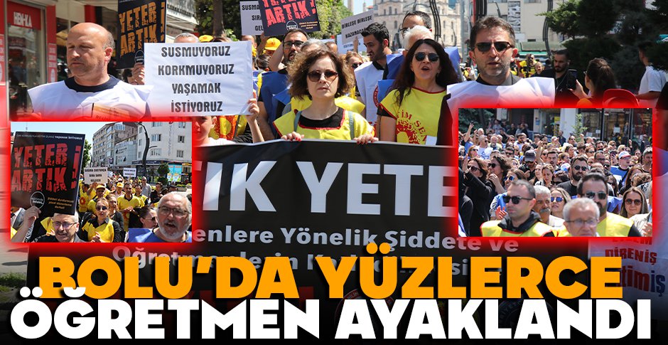 Bolu’nun ana caddesi İzzet Baysal Caddesi’nde toplanan yüzlerce öğretmen ellerinde pankartlarla eğitimciye şiddete karşı sloganlar atarak yürüyüş yaptı. Bolu Valiliği önüne kadar yürüyen öğretmenler Valilik Meydanı’nda basın açıklaması yaparak “Artık Yeter” sloganları attı.