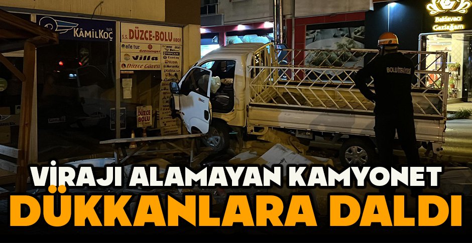 Bolu’da D-100 kara yolundan ara sokağa girmek isteyen bir kamyonet, virajı alamadı ve dükkanlara çarparak durabildi.