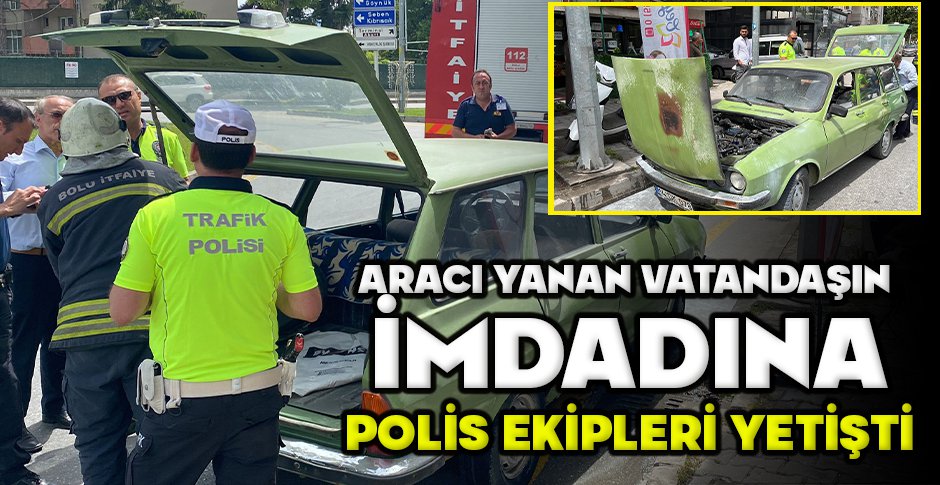 Bolu’da öğle saatlerinde seyir halinde giden bir otomobil alev aldı. Vatandaşın aracının yandığını fark eden bölgede görevli trafik polisleri yangın tüpleriyle alevleri söndürdü.
