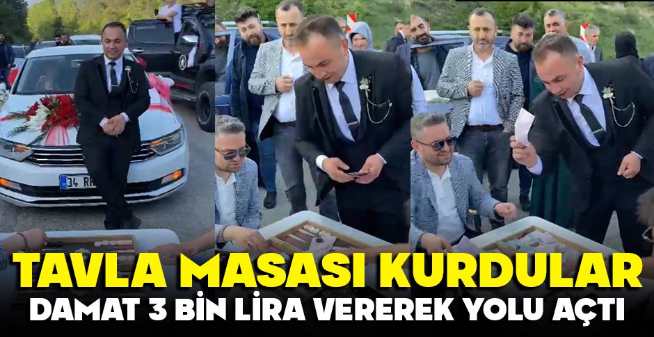 Bolu'dan gelin almaya gelen Çorumlu damadın arkadaşları, gelin konvoyunun önünü tavla masası kurarak kesti. Tavla oyununun üzerine para bırakan Damat, yaklaşık 3 bin lira vererek yolun açılmasını sağladı.