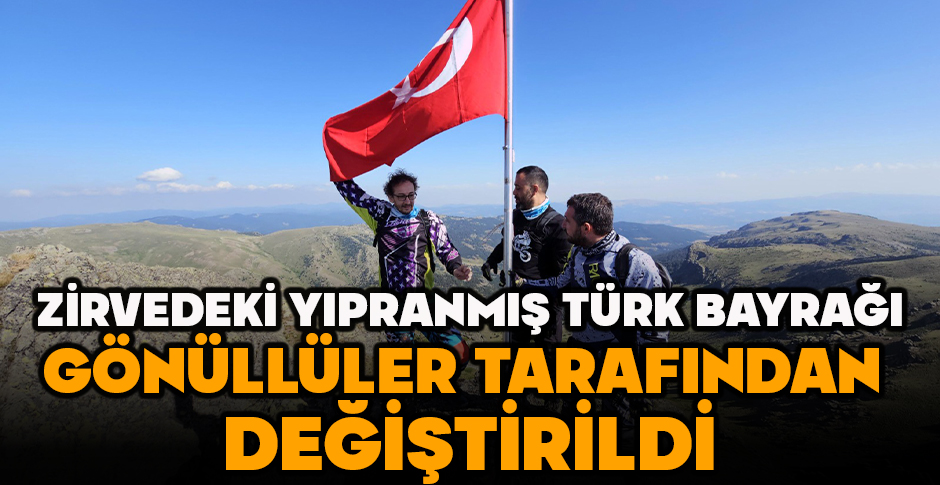 Bolu'da 2 bin 400 rakımlı Köroğlu Dağları'nın zirvesinde hava şartları nedeniyle yıpranan Türk bayrağı, gönüllüler tarafından zorlu tırmanış sonrası yenisiyle değiştirildi.