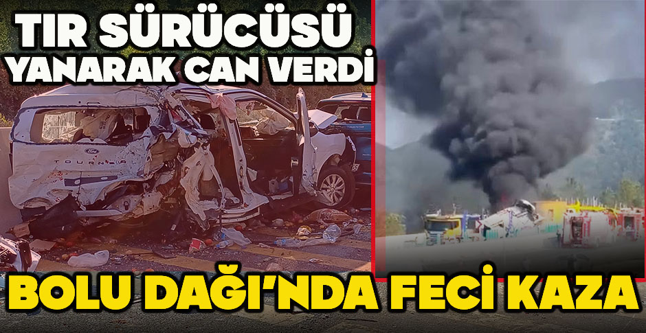 Bolu Dağı'nda freni boşalan tır, 6 araca çarptıktan sonra alev aldı. Feci kazada tır sürücüsü hayatını kaybederken, 7 kişi yaralandı. Kazanın ardından karayolunun İstanbul istikameti ulaşıma kapandı.