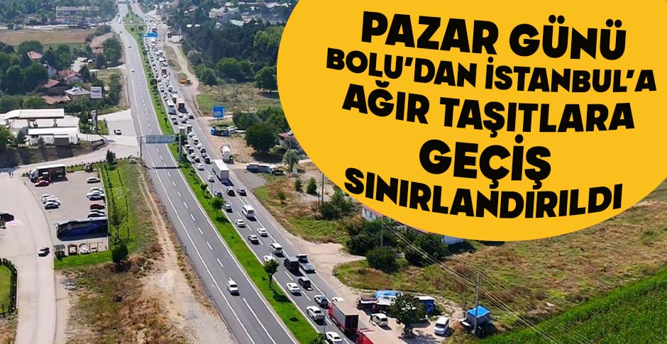 Her hafta Pazar günü D-100 kara yolunun Bolu Dağı geçişinde oluşan yoğunluk sebebiyle, trafik yoğunluğunu azaltmak için Pazar günü saat 14.00 ile 23.00 arasında güzergah ağır taşıtlara yasaklandı.