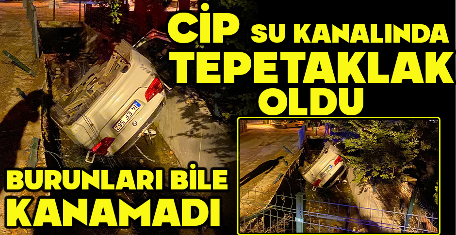 Bolu'da kontrolden çıkan bir cip, su kanalında tepetaklak oldu. Araçta bulunan ve yara almadan kazayı atlatan 2 kişi vatandaşların yardımıyla bulundukları yerden çıkarıldı.