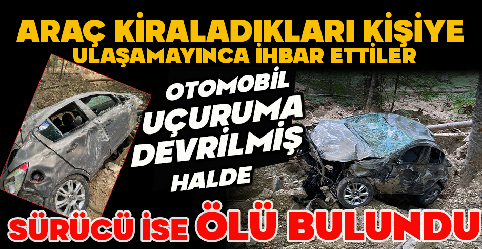 Bolu’da bir araç kiralama şirketi, teslim edilmeyen araçlarına ulaşmak için 112’ye ihbarda bulundu. GPS’le yeri tespit edilen aracın uçuruma devrildiği görülürken ve 49 yaşındaki sürücünün içinde ölü olduğu belirlendi.
