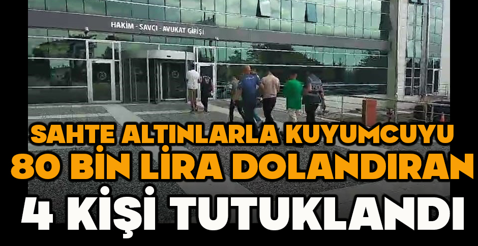 Bolu’da sahte altınları bozdurarak bir kuyumcuyu 80 bin lira dolandıran şahıslar yakalandı. Şanlıurfa’dan geldikleri tespit edilen 4 kişi, tutuklanarak cezaevine gönderildi.