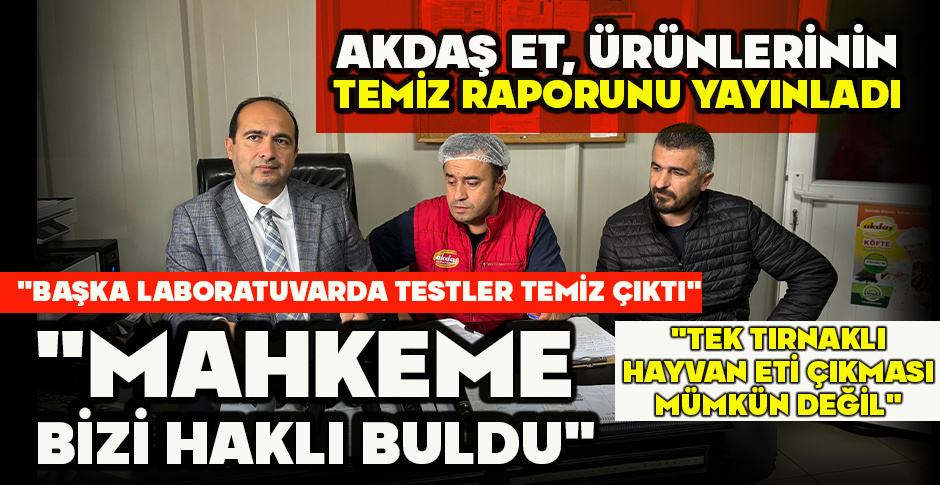 Firma Avukatı Sinan Barut yaptığı açıklamada, Akdaş Et’te tek tırnak hayvan etinin tespit edilmesinin mümkün olmadığını ifade ederek, “Ankara’da Tarım ve Orman Bakanlığı’nın laboratuvarında yapılan tespitlerin ardından, herhangi bir şekilde Akdaş Et’te tek tırnak tespit edilmesinin mümkün olmadığını, bu konuda bir yanlışlık olduğundan dolayı Düzce Asliye Hukuk Mahkemesi’ne tespit talebinde bulunduk.” dedi.