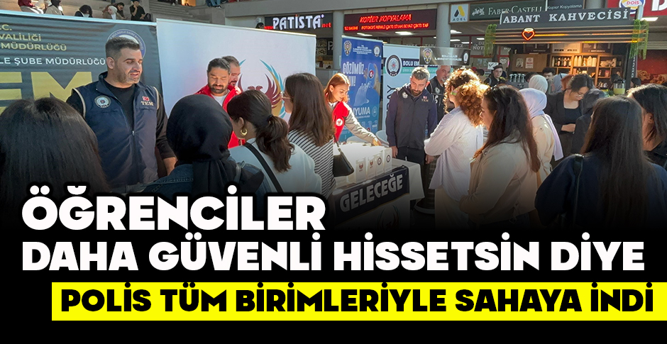 Bolu İl Emniyet Müdürlüğü, ‘El Ele Güvenli Geleceğe’ isimli proje çerçevesinde Bolu Abant İzzet Baysal Üniversitesi’nde Güvenlik, TEM, Narkotik Suçlarla Mücadele, Siber Suçlarla Mücadele, Asayiş Şube ve Toplum Destekli Polislik Şube Müdürlükleri stant açtı. Öğrencilerin daha güvenli ortamda yaşamaları için meydana gelebilecek olumsuzlukların önlenebilmesi için polisler gençleri bilinçlendirdi.