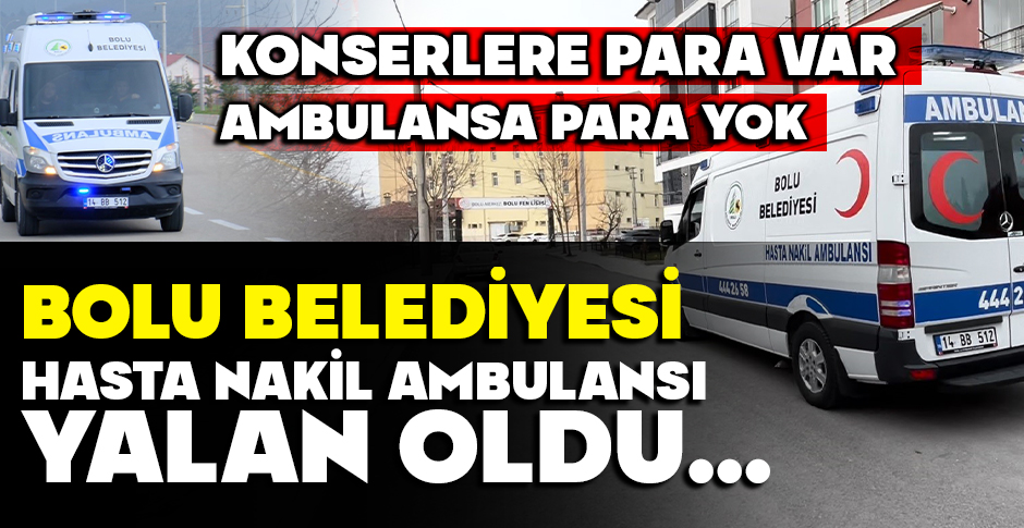 Bolu Belediyesi seçimlerden çok kısa bir süre önce hizmete soktuğu hasta nakil ambulans hizmetini kaldırdı. Hasta yakınlarını büyükşehirlerdeki hastanelere nakletmek isteyen vatandaşlar ambulans hizmeti için Bolu Belediyesi'ni aradıklarında aldıkları cevapla adeta şok oldu. Belediye yetkilileri vatandaşlara hasta nakil ambulans hizmetinin tasarruf tedbirleri kapsamında kaldırıldığını söyledi.