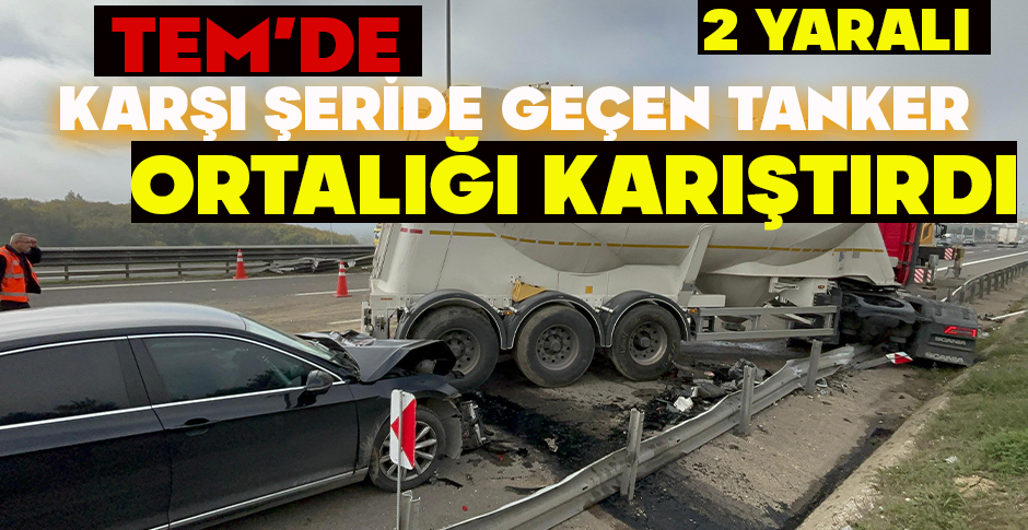 TEM Otoyolu'nun Bolu geçişinde bariyerleri kırarak Ankara istikametinden İstanbul istikametine geçen soda yüklü tanker, yolun 2 şeridini kapattı. Seyir halindeki otomobilin tankere çarpması sonucu meydana gelen kazada 2 kişi yaralandı.