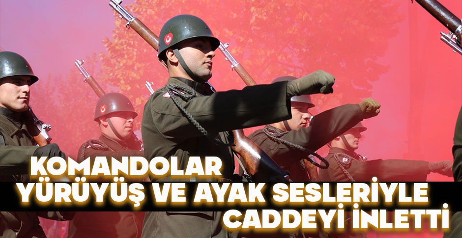 Bolu’da, Cumhuriyetin kuruluşunun 101’inci yıl dönümü kutlamalarında 2’nci Komando Tugay Komutanlığındaki komandoların tören geçişi renkli görüntülere sahne olurken, mavi bereliler marşlarla caddeyi inletti.