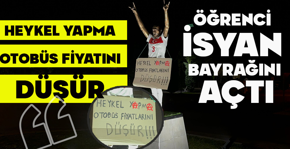 Akşam saatlerinde kimliği belirsiz kişi ya da kişiler tarafından heykelin üzerine, “Heykel yapma otobüs fiyatlarını düşür” yazası asıldı. Pankartta Beşiktaş Çarşı Grubu’nun ambleminin olması dikkat çekti. Uzun süreden bu yana üniversite öğrencileri otobüs fiyatlarının fazla olduğu ifade ederek eylem yapmışlardı.