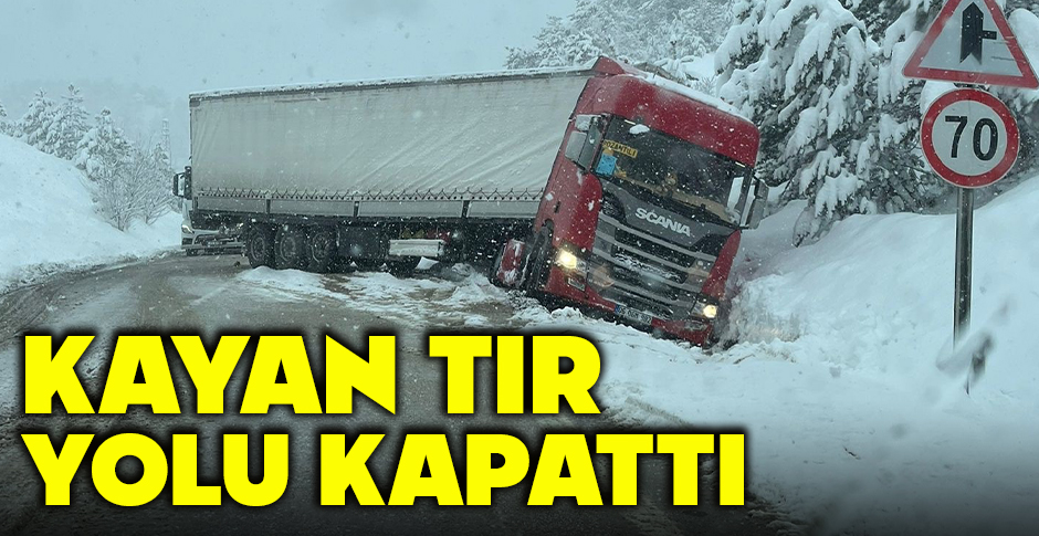 Bolu'nun Göynük ilçesinde yoğun kar yağışı ve buzlanma sebebiyle kontrolden çıkan tır kayarak trafiği aksattı.