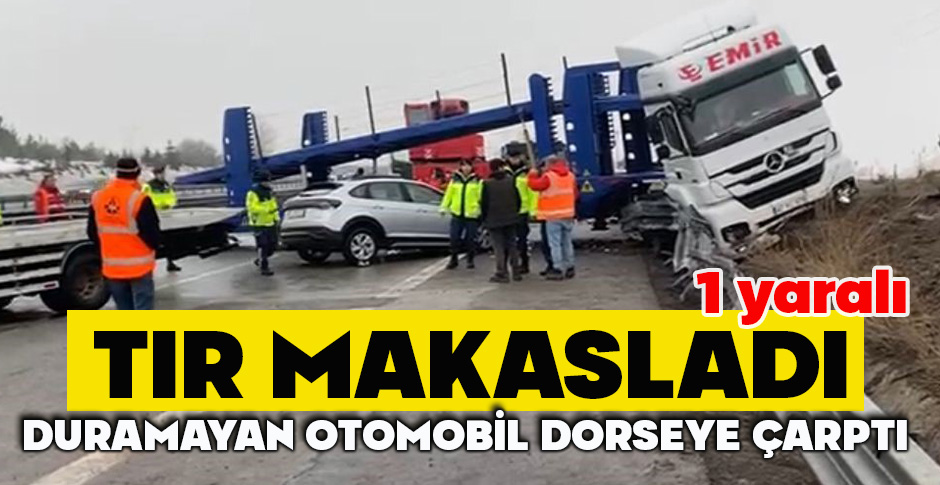 TEM Otoyolu’nun Bolu geçişinde kontrolden çıkarak bariyerlere çarpan tır makasladı. Tırın dorsesine aynı istikamette seyreden bir otomobil durmayarak çarptı. Kazada 1 kişi yaralandı.