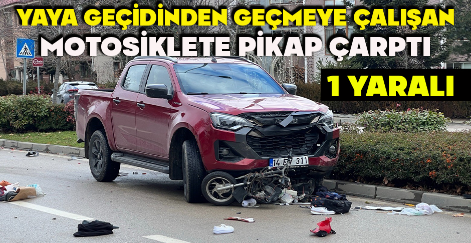 Bolu’da yaya geçidinden yolun karşısına geçmeye çalışan elektrikli motosiklete pikap çarptı. Kazada 1 kişi yaralandı.
