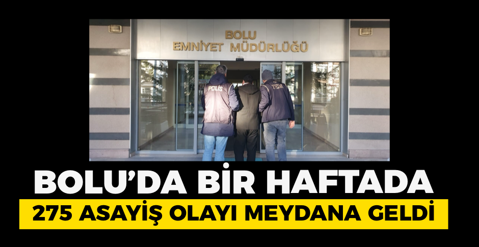 Bolu Valiliği tarafından İl Emniyet Müdürlüğü ve İl Jandarma Komutanlığı ekiplerinin asayiş olaylarına yönelik çalışmaları devam ediyor. Bolu’da son bir haftada 275 asayiş olayı meydana geldi. Edinilen bilgiye göre, asayiş olaylarıyla alakalı 106 şüpheli ekipler tarafından yakalandı. Ayrıca aranması bulunan 21 kişi yakalanarak gözaltına alındı. Şüphelilerden yalnızca 8’i tutuklanarak cezaevine gönderildi.