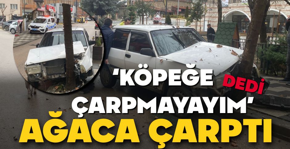Bolu'da önüne çıkan köpeğe çarpmamak için manevra yapan otomobil ağaca çarptı. Meydana gelen kazada otomobilin ön kısmında maddi hasar oluştu.