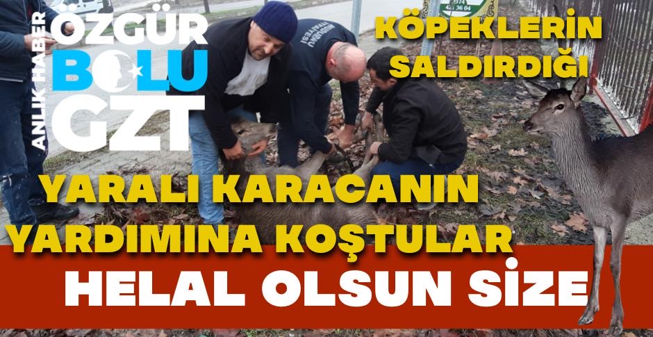 Edinilen bilgiye göre, Mudurnu ilçesinde sokak köpekleri tarafından saldırıya uğrayan karacıyı gören vatandaşlar köpekleri bölgeden uzaklaştırarak karacayı kurtardı. Yaralı olduğu tespit edilen karaca can havliyle vatandaşlardan kaçmaya çalıştı. Durum itfaiye ekiplerine bildirildi. İhbar üzerine olay yerine gelen itfaiye ekipleri ve vatandaşların uzun uğraşları sonucunda yakalanan yaralı karaca, Doğa Koruma ve Milli Parklar Müdürlüğü (DKMP) ekiplerine teslim edildi. Yavru karacanın tedavisinin yapılmasının ardından doğal yaşam alanına bırakılacağı öğrenildi.